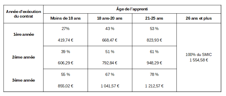 Cette rémunération peut varier en fonction de l’âge et de l’année de formation (Cf. tableau de rémunération d’un apprenti).